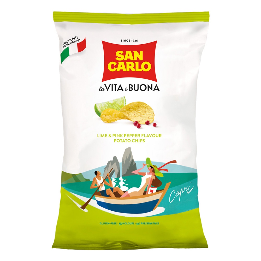 【イタリアのお土産】SAN CARLO サンカルロ ポテトチップス(ライム&ピンクペッパー)