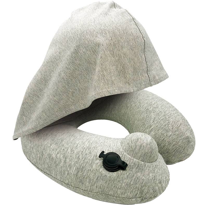 【旅行グッズ】インフレータブルポンプネックピロー フード付きグレー