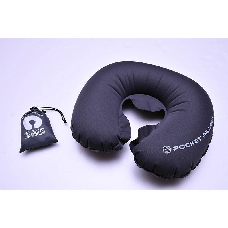 【旅行グッズ】インフレータブルポンプネックピロー グレー